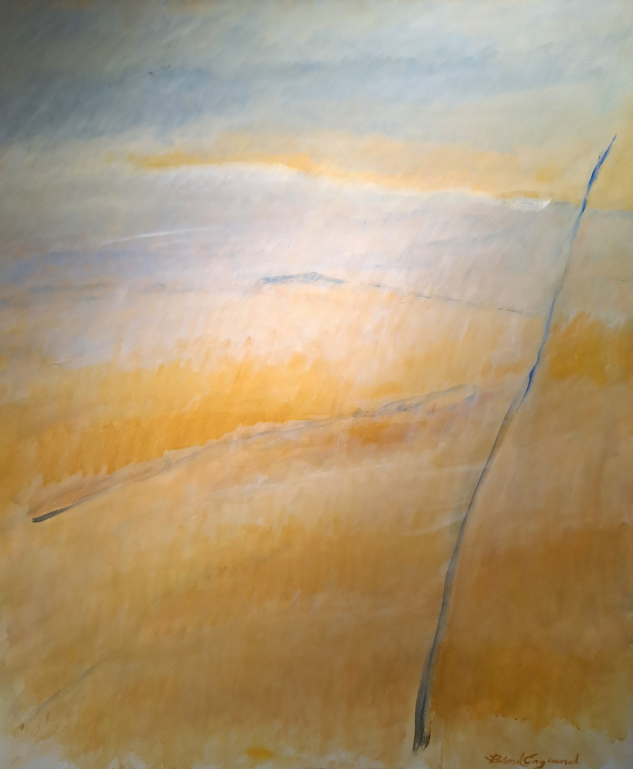 Målningar som domineras av ockra i ljusa toner är inspirerade av formationerna i landskapet kring Vättern. Motiven är starkt abstraherade men förmedlar känslan av vatten, luft och rymd. Målningarna tycks vara hastigt tillkomna, med tunna färglager och snabba penseldrag som lämnar duken synlig. Men detta är delvis en illusion. Vi närmare betraktande består de av många lager och är resultatet av noggrant övervägande och flera omvärderade beslut. Varför man ändrar, varför en bild slutligen blir som den blir är svårt att säga, enligt Roland Englund……
